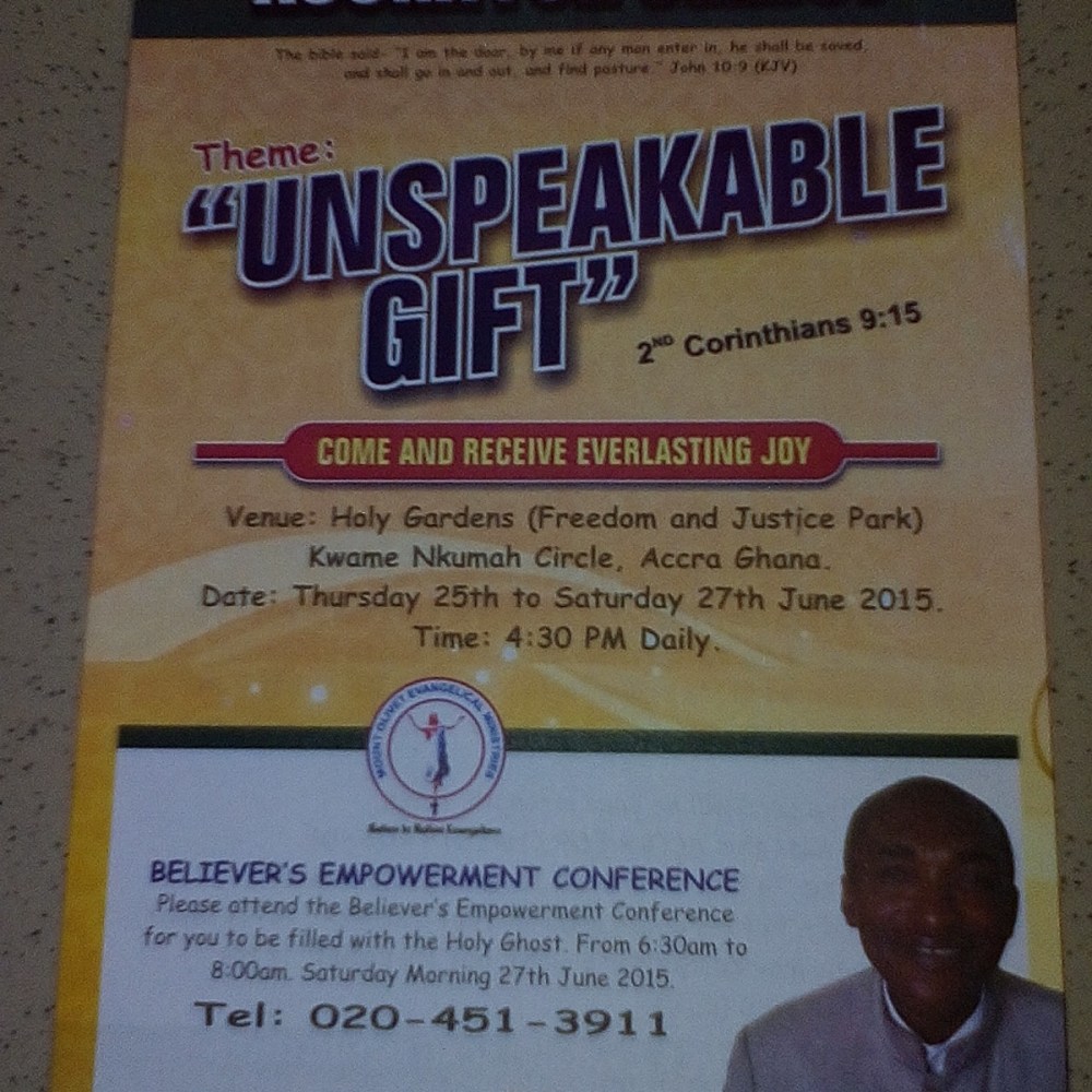 We had our last . annual crusade = Accra For Christ 2015 and the Believer’s Empowerment Conference = 25th To 27th June 2015. And Souls were Won for Christ and a Mad Man was healed and delivered from the bondage of the devil and he gave his life to Christ. Glory be to God. Amen.