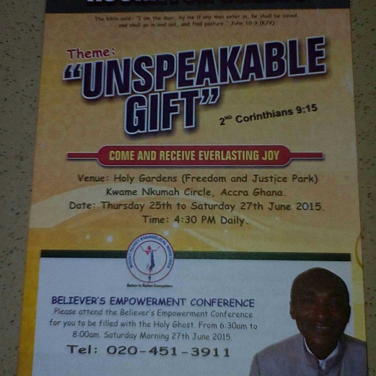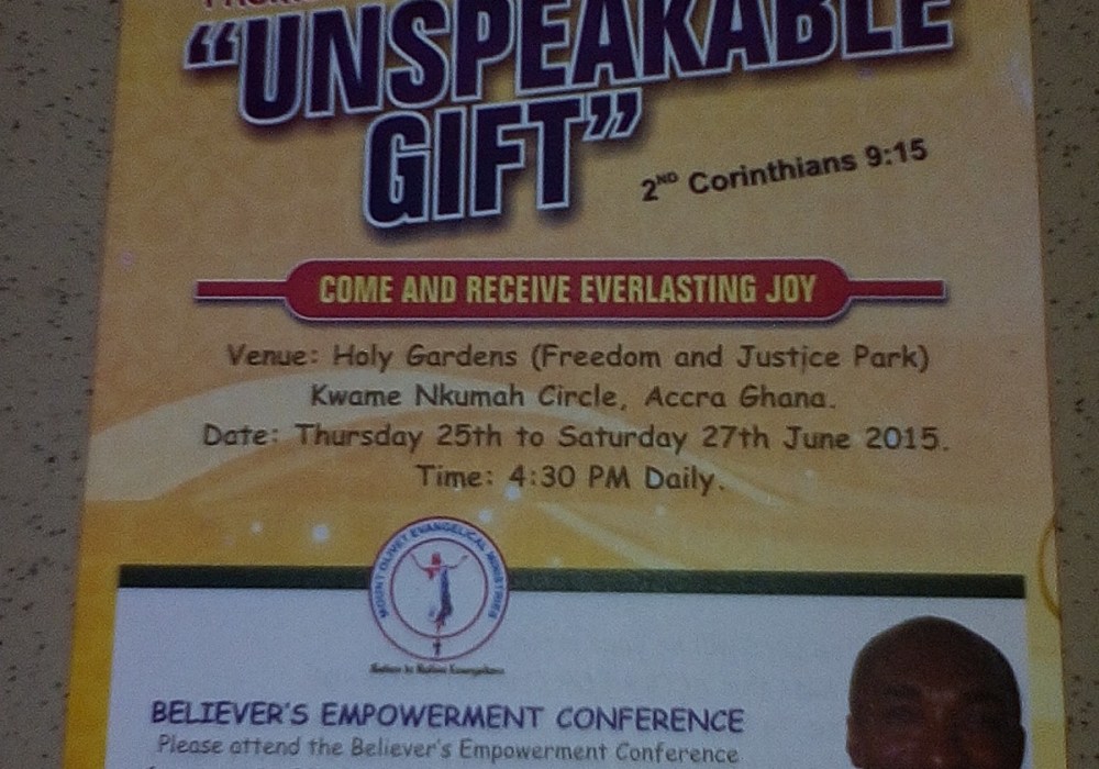 We had our last annual crusade = Accra For Christ 2015 and the Believer’s Empowerment Conference = 25th To 27th June 2015. And Souls were Won for Christ and a Mad Man was healed and delivered from the bondage of the devil and he gave his life to Christ. Glory be to God. Amen.