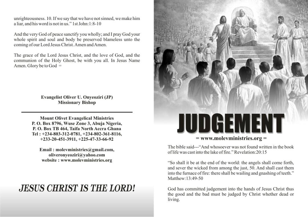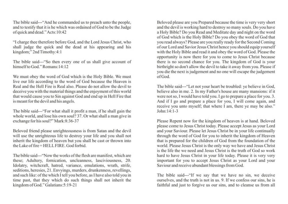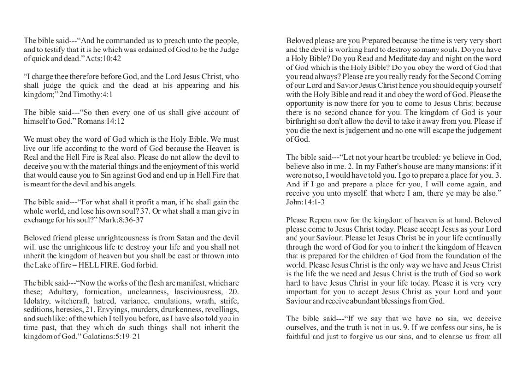 Beloved friends please the message is for you and your family and friends. Jesus Christ said the time is fulfilled and the kingdom of God is at hand: Repent ye and believe the gospel. Please see Mark 1:15= Glory be to God. Jesus. Evangelist Oliver Onyeoziri