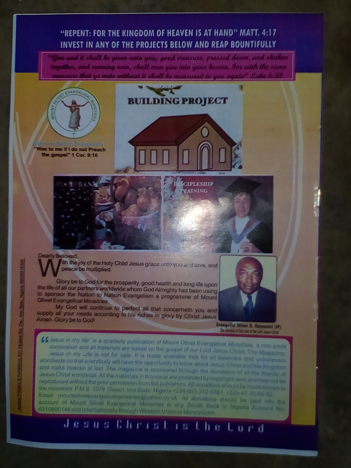 The magazine = Jesus In My Life Magazine is a Christian Magazine to build life and to Save Souls. Beloved Please Sow a Seed of Faith.